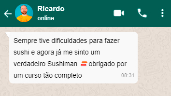 Estamos tão confiantes na transformação que nosso curso pode trazer à sua vida, que estamos oferecendo esta garantia ousada. É simples: ou você se apaixona pelo aprendizado e descobre o sushiman dentro de você, ou você não paga nada.